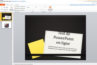Disons-le tout de suite: ne vous attendez pas à retrouver ne serait-ce que la moitié des fonctionnalités que vous avez l'habitude d'utiliser dans la version normale: pas d'insertion de formes, de graphiques, d'équations, pas plus que de vidéos ou de fichiers audio. Il n'y a pas non plus de palette d'effets de transitions et si il est bien possible d'ajouter des images dans les diapositives, vous ne pouvez pas les déplacer ou les ajuster comme bon vous semble... Vous êtes donc prévenus.